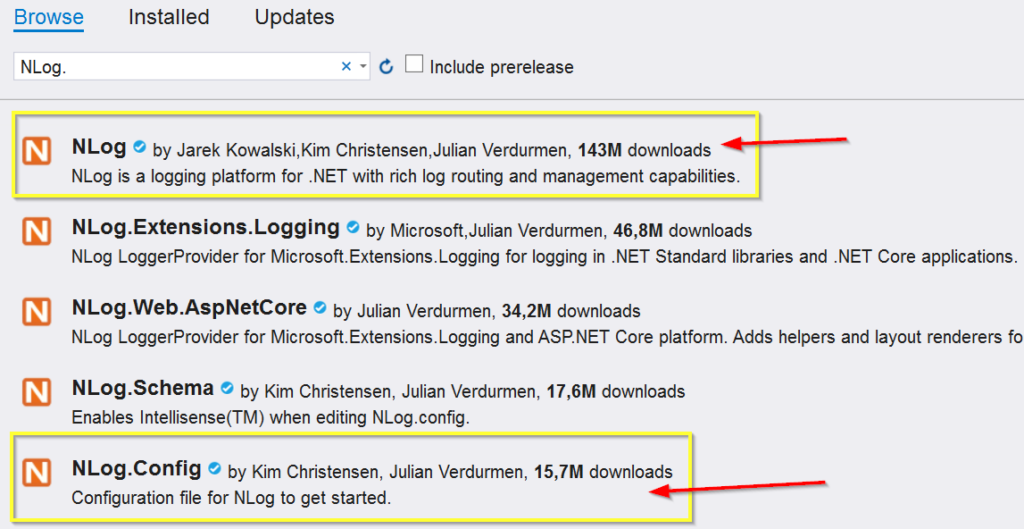 Um NLog zu verwenden müssen zwei Nuget-Packages installiert werden: