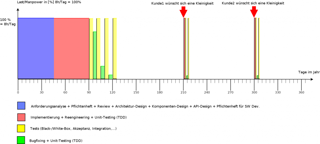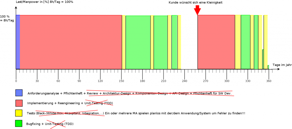 - bei kleinen Anpassungen/Änderungen für einen Kunden, beschwert sich mindestens ein anderer Kunde über neuen Fehler (von einer Funktion, die bis dahin immer tadellos funktionierte)