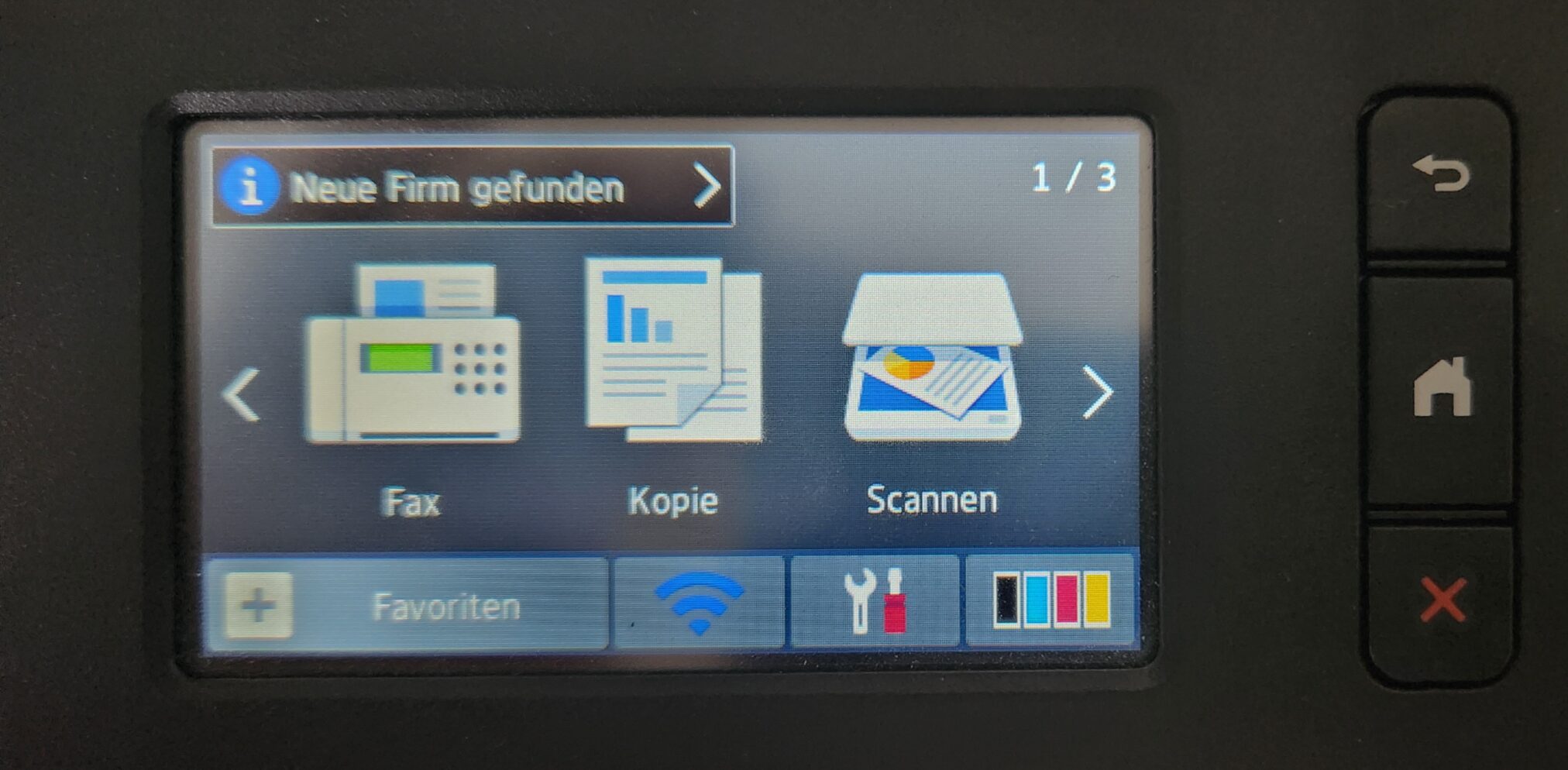 Ich schaltete meinen All-in-One-Office-Drucker ein – und prompt erschienen auf dem kleinen Touch-Display sowie am PC Hinweise auf eine neue Firmware.