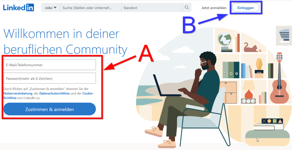 - Anmelden tut man sich dann in mindestens 80 % der Fälle (= B)