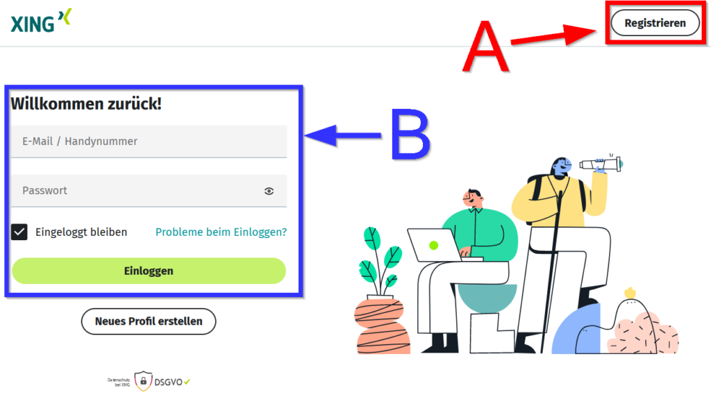 Somit wären die UI Elemente für das Anmelden (= B) wichtiger als für das (einmalig) Registrieren (= A)