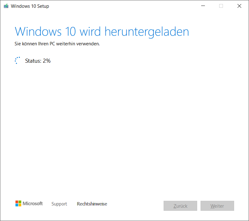 Nun werden die Dateien für den Windows-10-Installer heruntergeladen. Je nacht Internetgeschwindigkeit kann dies mehrere Minuten dauern:
